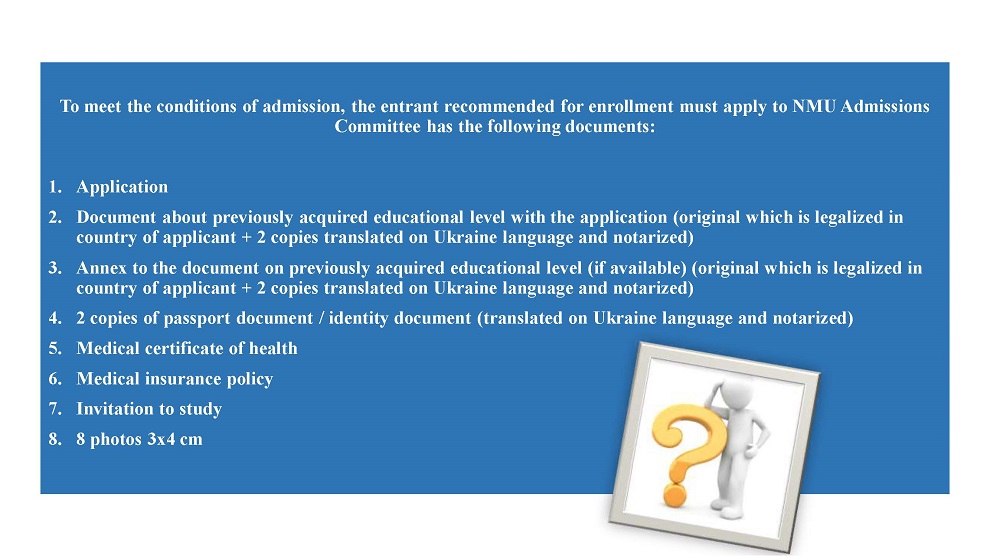 - A copy of document about a previously level of education with notarization of translation into Ukrainian language;