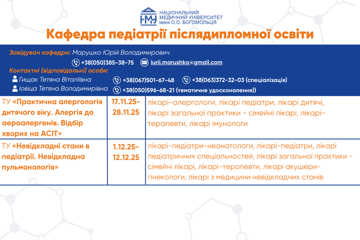 Післядипломна освіта та безперервний професійний розвиток медичних та фармацевтичних працівників