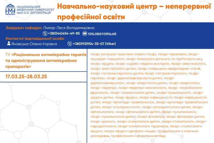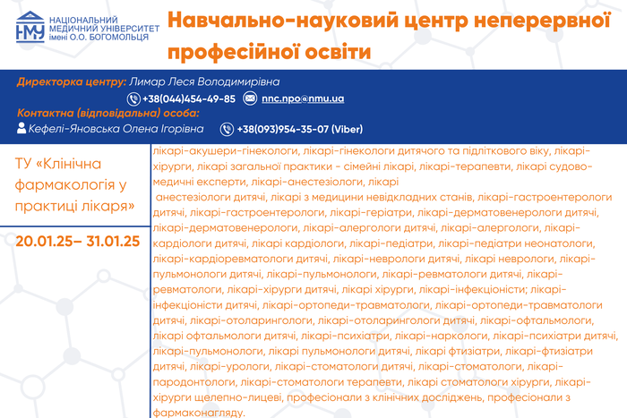 Післядипломна освіта та безперервний професійний розвиток медичних та фармацевтичних працівників