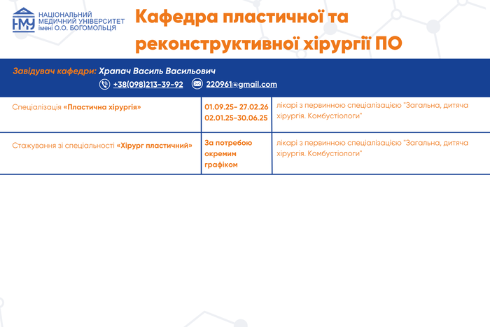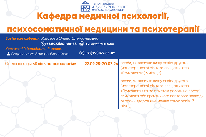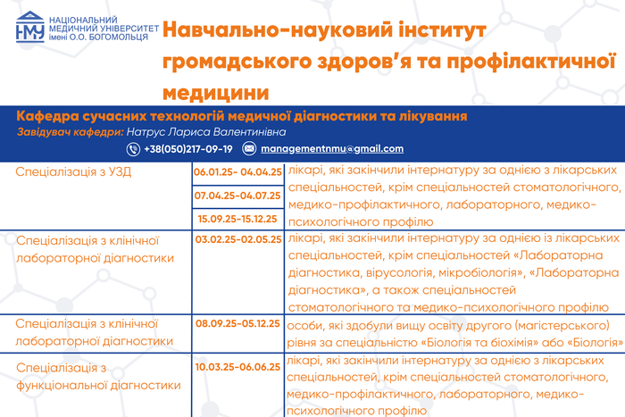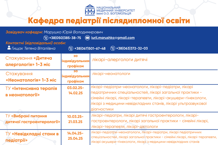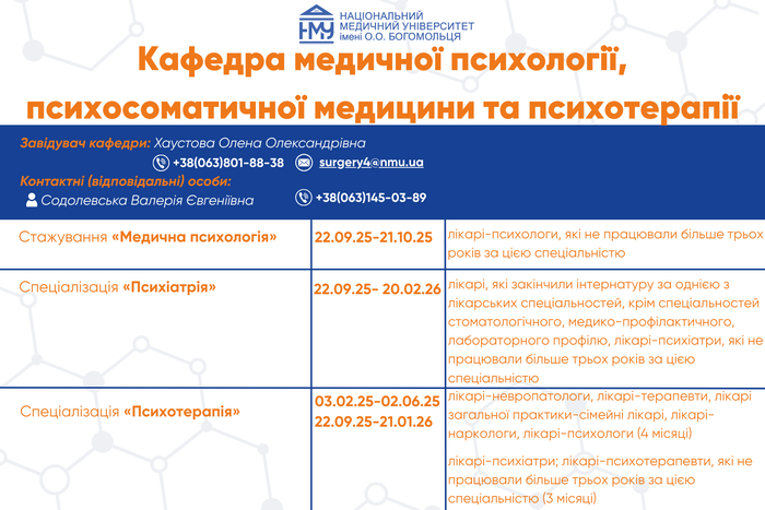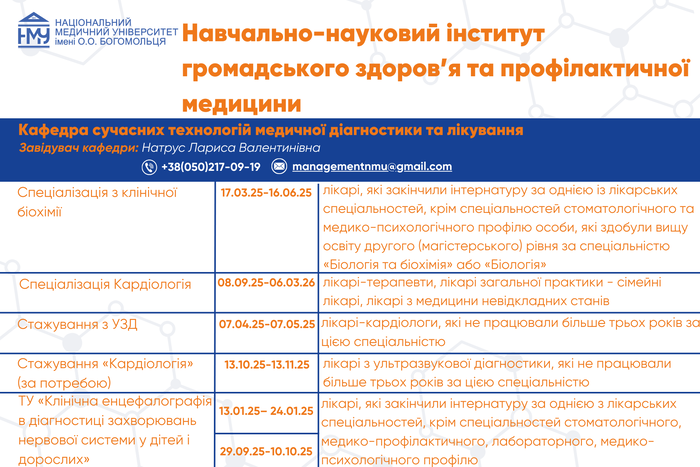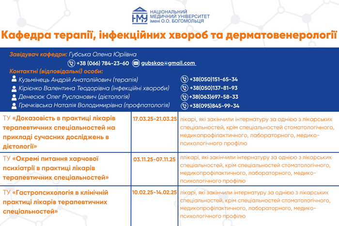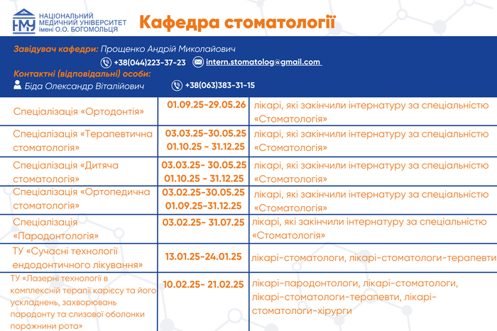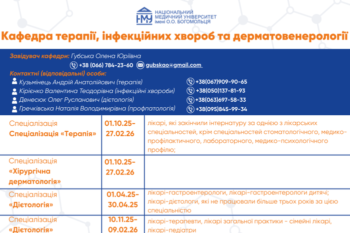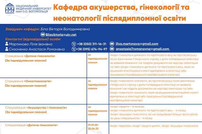 Положення про порядок професійного медичного стажування на клінічних кафедрах та структурних підрозділах Університетської клініки Національного медичного університету імені О.О. Богомольця: https://drive.google.com/file/d/1ZV0Zr1LXhXmbOGOH62BFLlLJm6TYHSjV/view