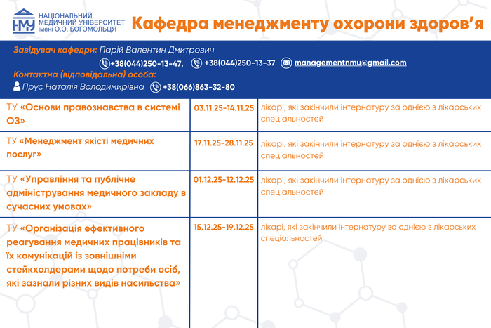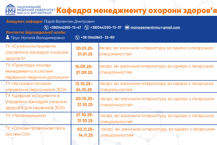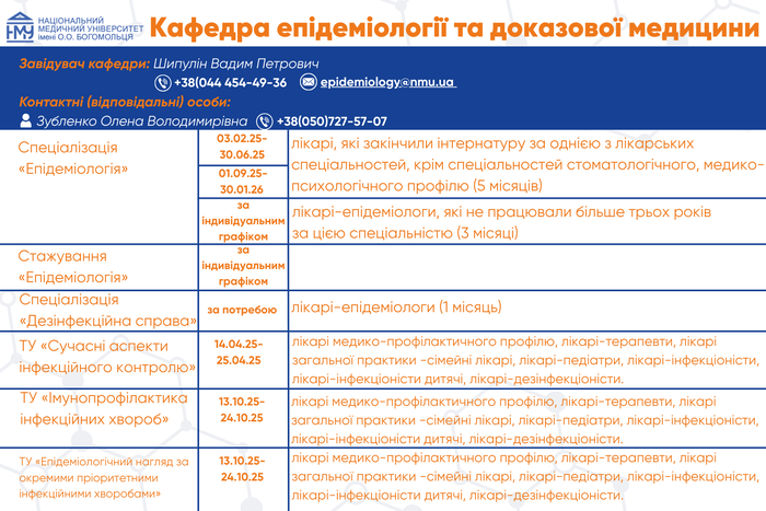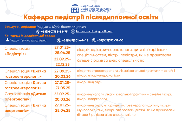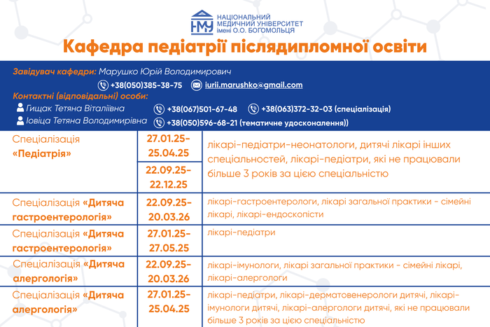 Наказ МОЗ України від 25 липня 2023р № 1347 «Про затвердження Переліку циклів спеціалізації та тематичного удосконалення за лікарськими та фармацевтичними (провізорськими) спеціальностями»: https://zakon.rada.gov.ua/laws/show/z1362-23#Text